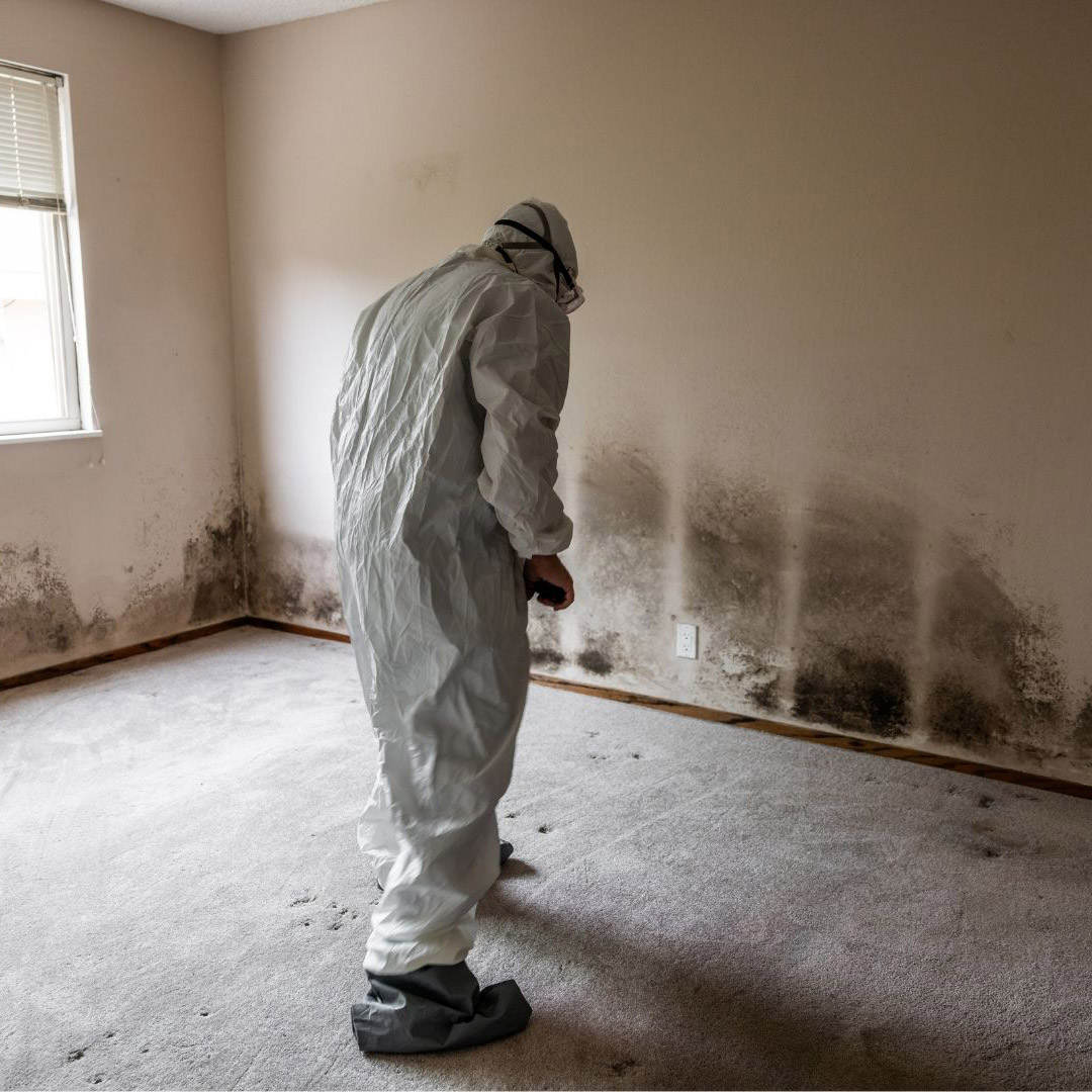 A certified technician assesses visible mold, moisture intrusion, and air-quality concerns.
